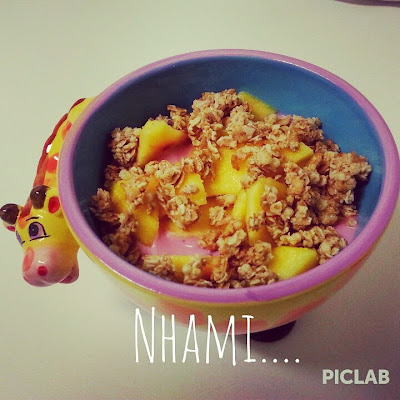 Iogurte de frutos silvestres, nectarinas e cereais, hummm.... tão bom!