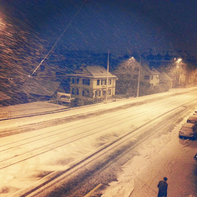 Uma pessoa acorda a um Domingo de manhã, ainda meio noite, para ir trabalhar e é isto! Tudo coberto de neve! A noite foi forte!