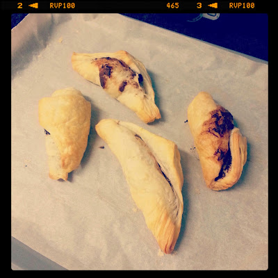 Depois de uma tarde a tortilla chips, decidi meter mãos à obra e fiz uns folhadinhos de chocolate!